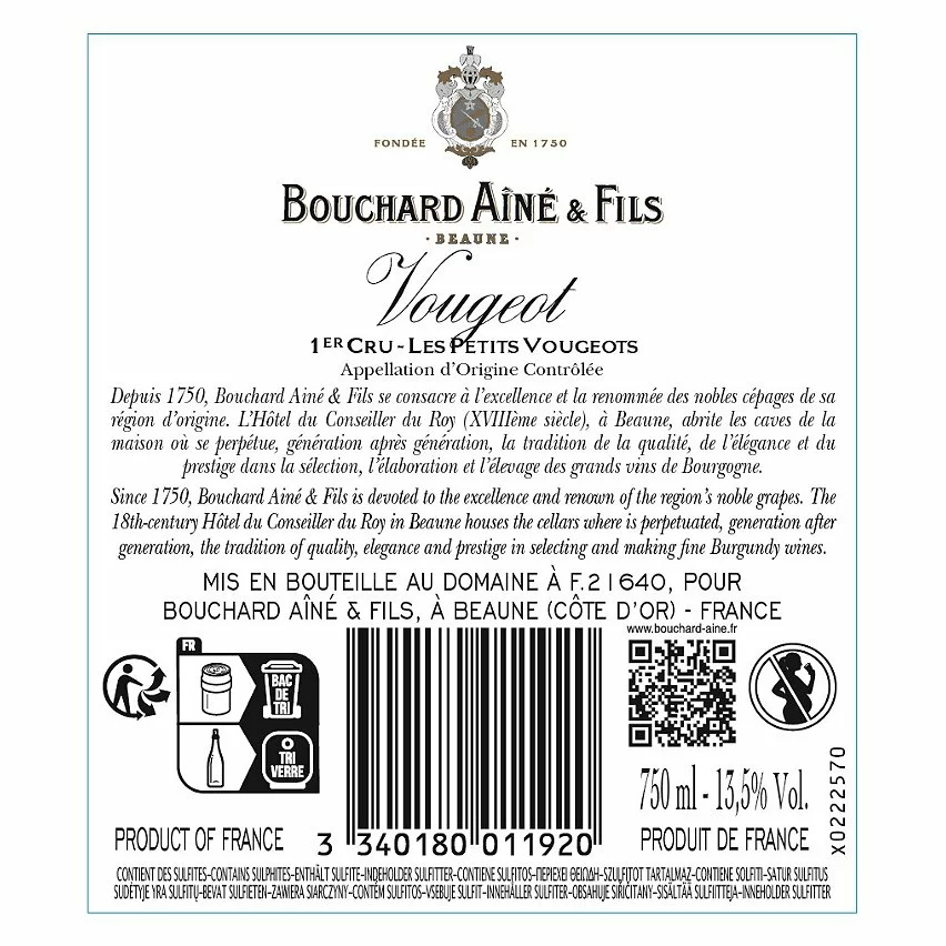 Budget ???? Bouchard Aîné & Fils, 2018 – Vougeot 1er Cru AOP – Rouge – 75 cl ????