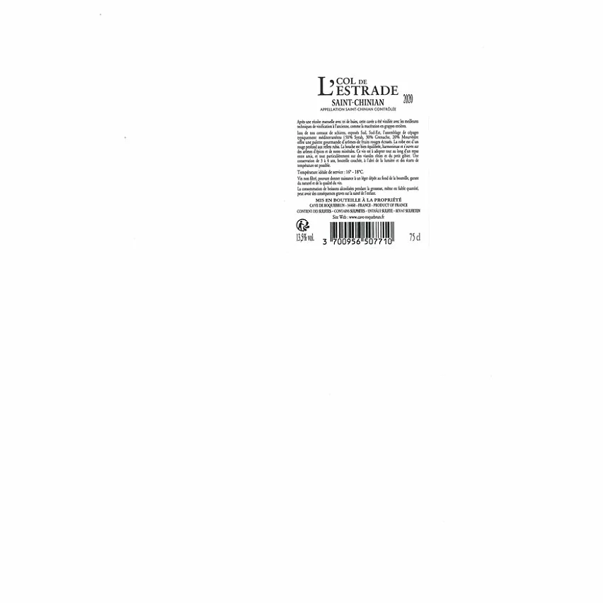 Meilleur prix ???? Col De L’Estrade, 2020 – Saint-Chinian AOP – Rouge – 75 cl ????